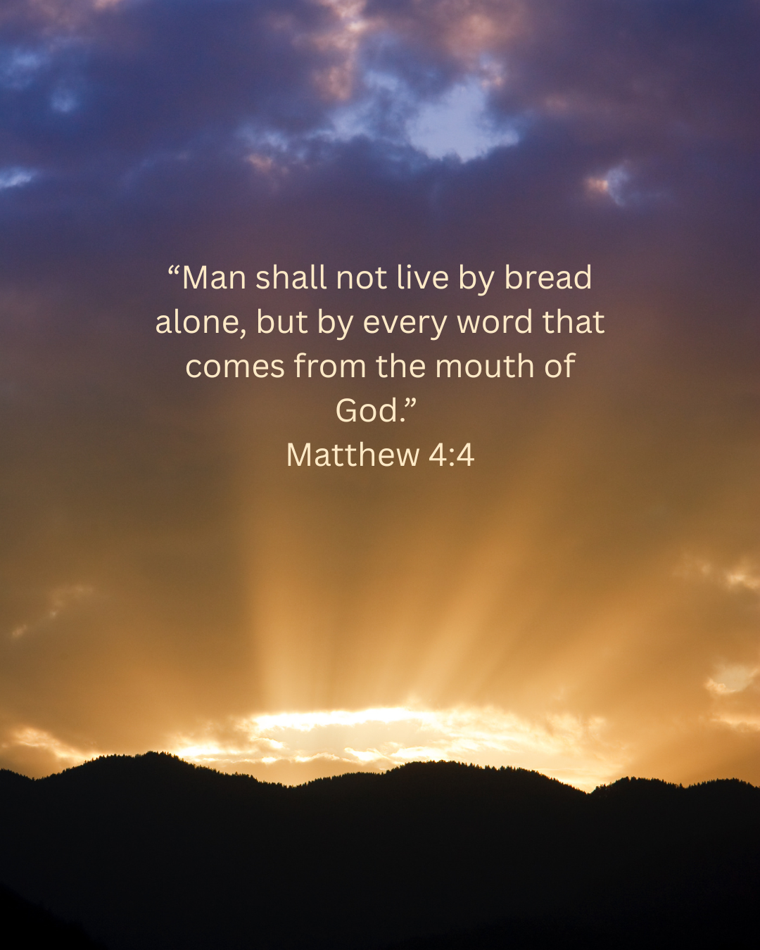 “Man shall not live by bread alone, but by every word that comes from the mouth of God.” Matthew 4:4